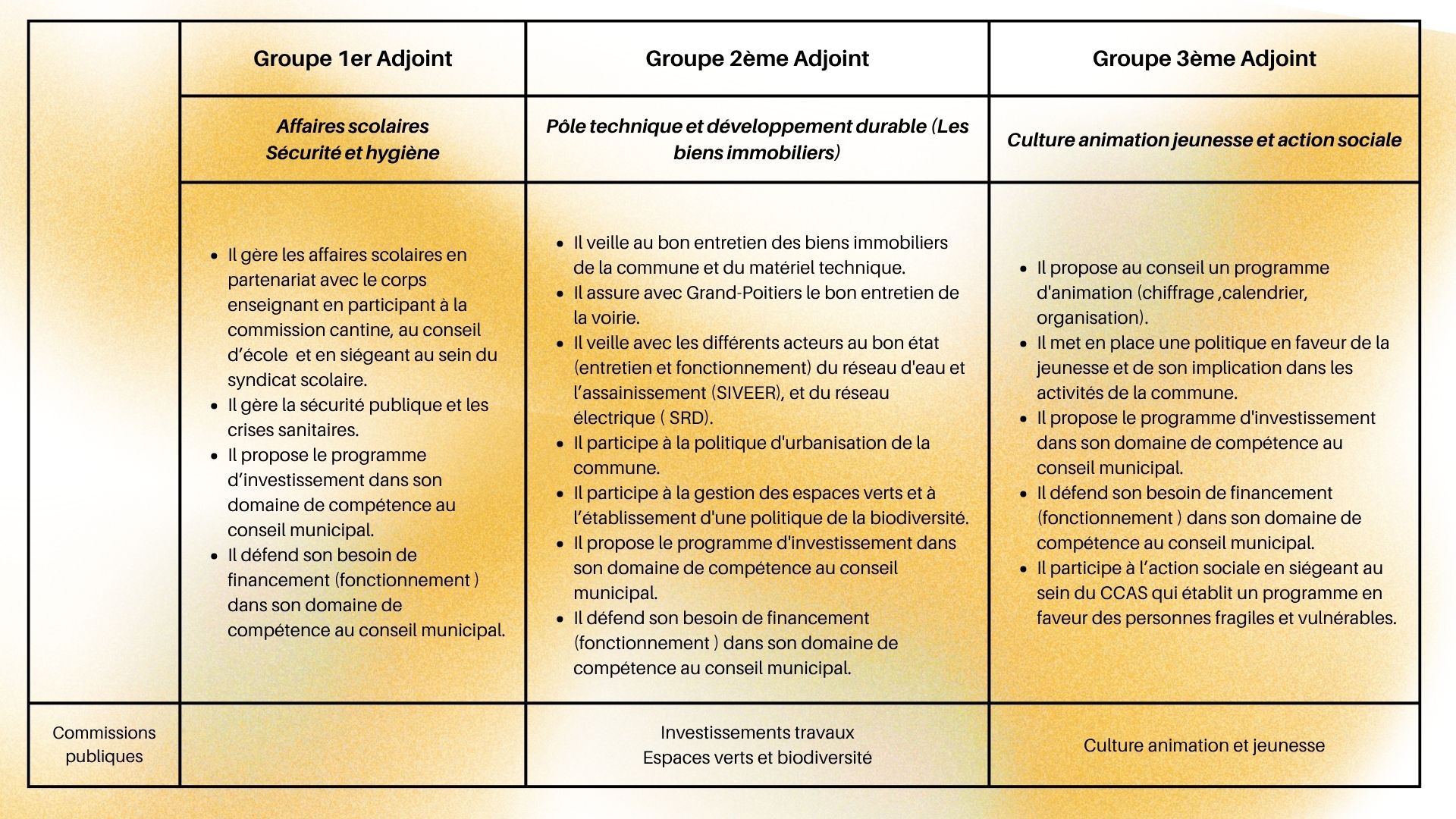 - 1er rang : Myriam Moinard-Seine, Nicolas Biteau, Céline Jean, Vincent Martin (Maire), Mathilde Boutin (1ère adjointe), Philippe Plat, Lucie Pottier (3ème adjointe).